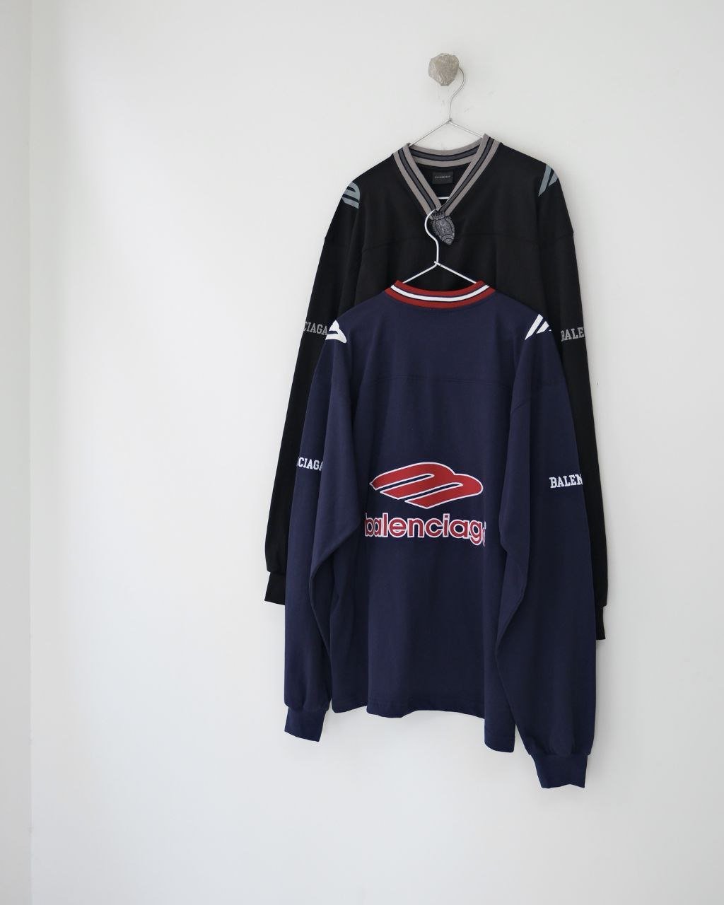 발렌시아가 26 3B 풋볼 V넥 롱슬리브