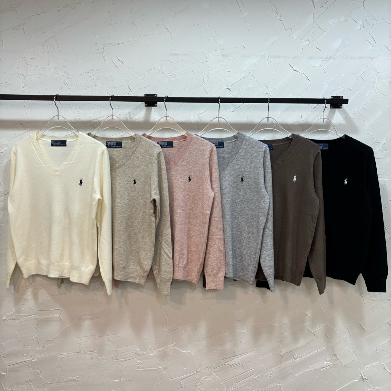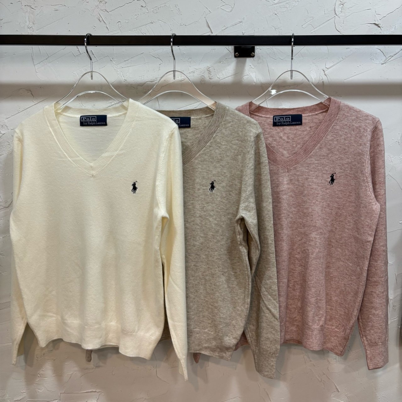 폴로랄프로렌 크림 캐시 브이넥 긴팔니트