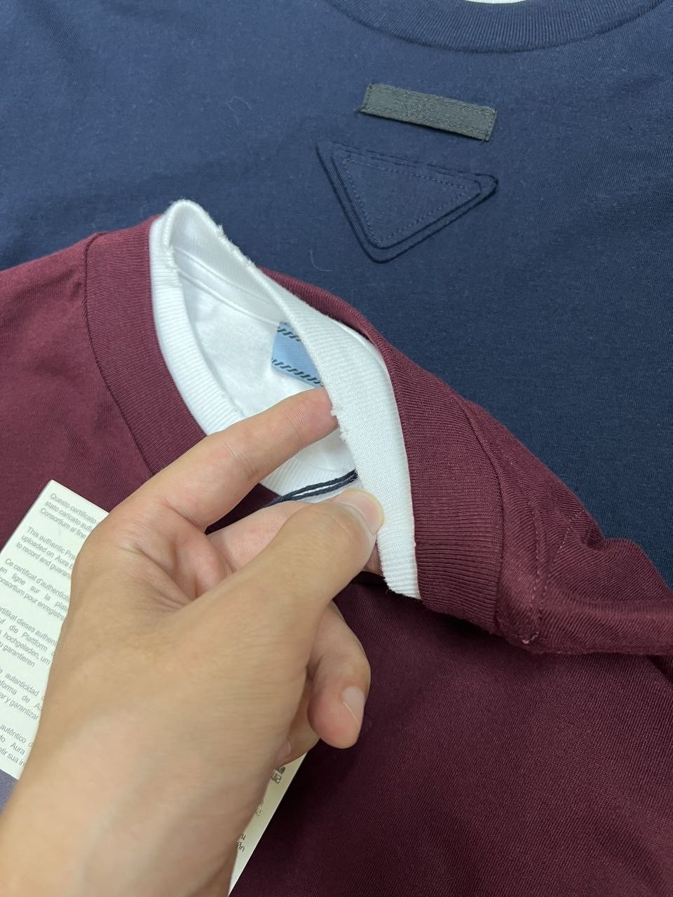 •PD FW25 삼각 로고 레이어두 2겹 롱슬리브 독특한 디자인으로 많은 인기를 받고 있는 아이템 입니다. ZP 구매후 1:1 맞춘 직조와 염색, 고급 수입 100% 피마 코튼으로 가벼운 아이템으로 여름철 가벼운 옷차림이나 가을/겨울/봄 기본 레이어로 만능형 디자인 입니다. 시원한 느낌의 가벼운 면사 소재로, 전체 평직 직조 방식으로 부드럽고 피부에 닿는 느낌이 좋으며, 드레이프성이 뛰어나 변형이 없고 착용 시 시원하고 통기성이 좋습니다. 라벨, 태그, 세탁 라벨, 모두 ZP 동일 맞춤