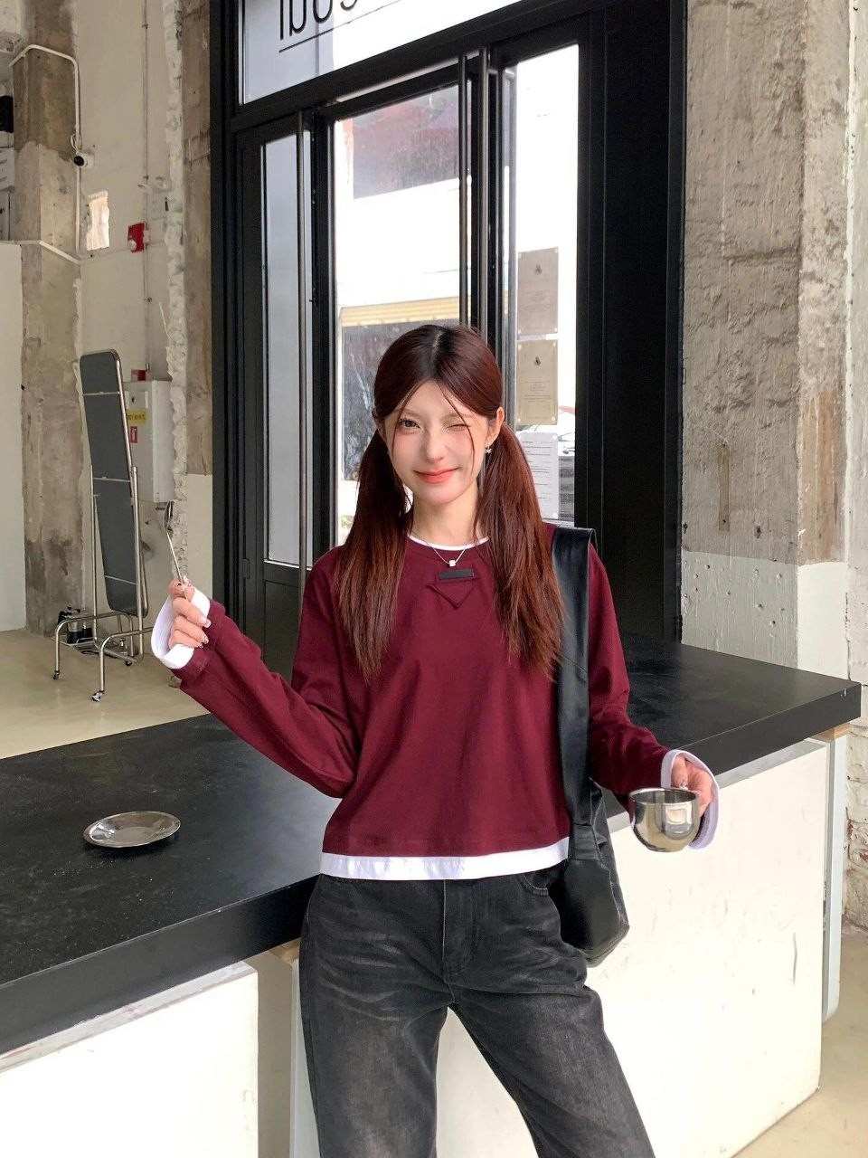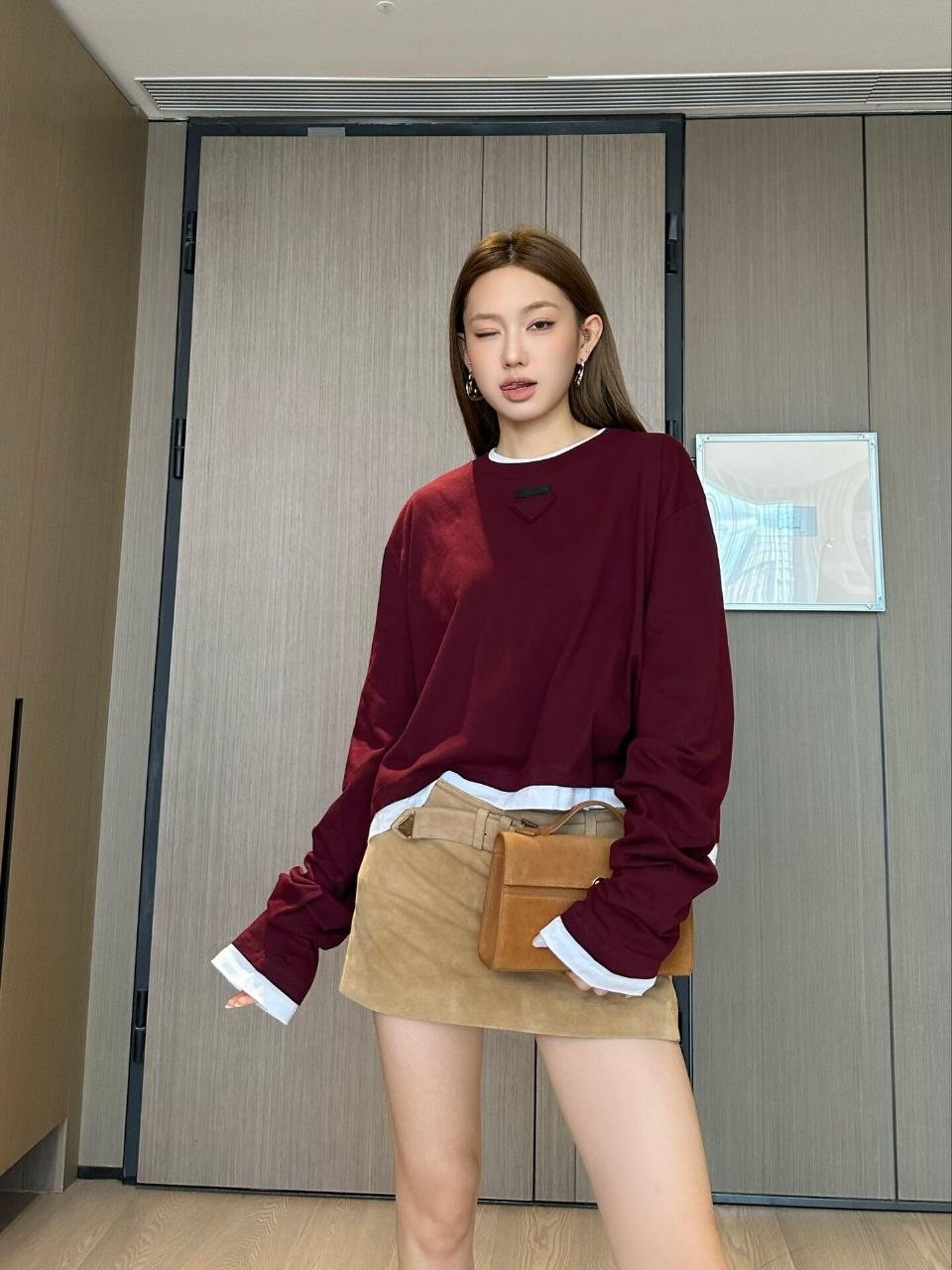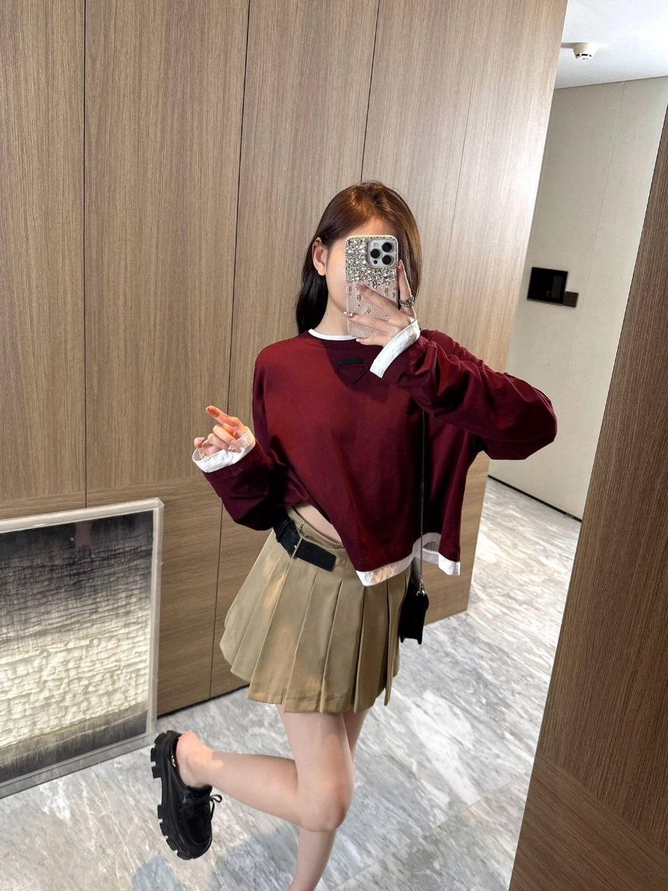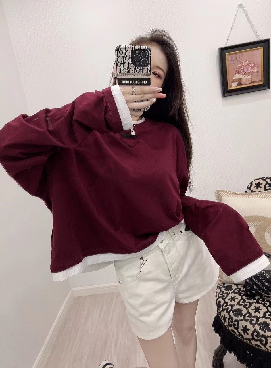 •프라다 25 삼각 로고 레이어드 롱슬리브