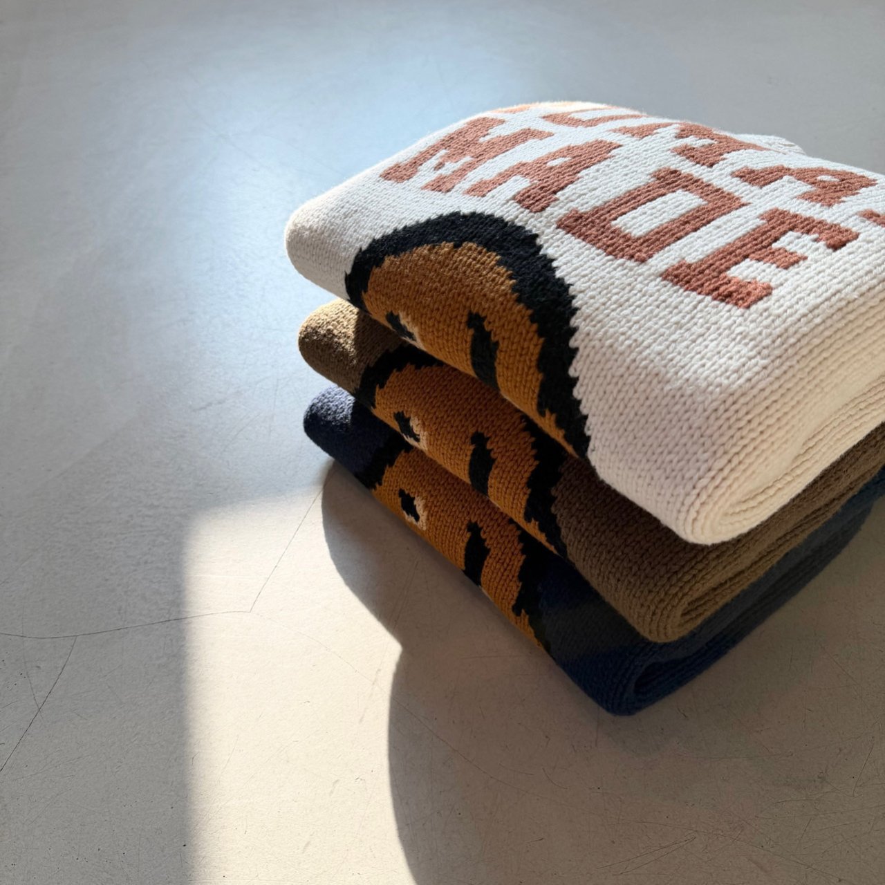 •3게이지로 편직되어 매우 두꺼우며, 자카드로 편직되어 자카드 무늬는 입체감과 볼륨감이 특징입니다. 또한 내구성도 매우 높습니다.