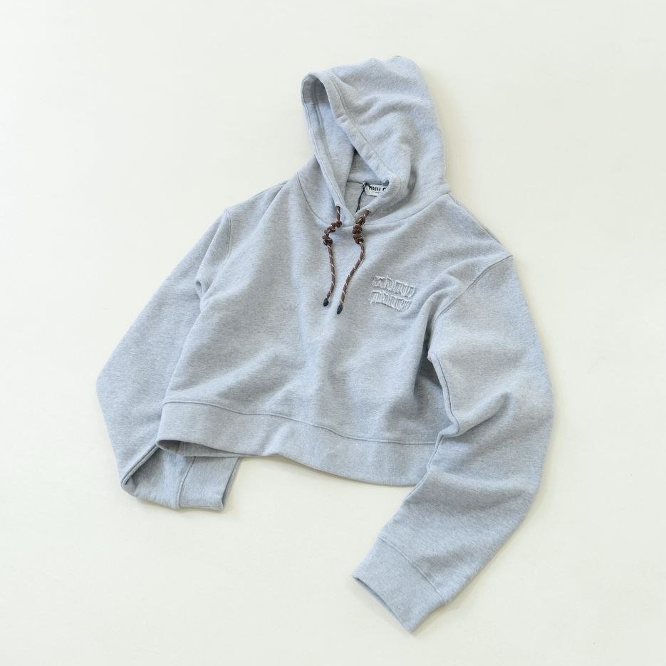 미우미우 25 로고 패치 크롭 후드