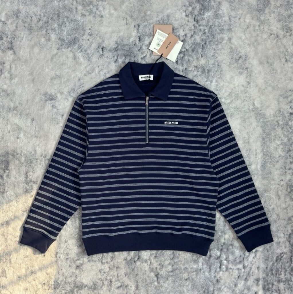 미우미우 25 스트라이프 지퍼 폴로 셔츠