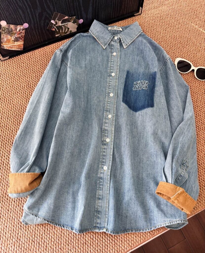 미우미우 25 페이크 포켓 패치 로고 데님셔츠