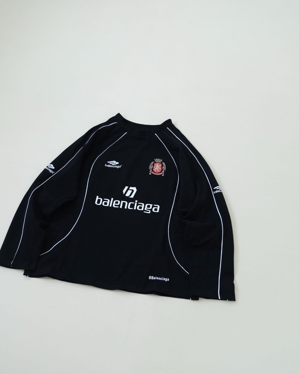 •BALENCIA** 한정판 파리 사커 10 넘버 롱슬리브 입니다. 원단은 300g 순면으로 직조 및 염색 처리되어 있으며, 단단하고 형태가 유지되는 최고급 원단 입니다. 시중에 저렴한 얇은 버전과는 차별화됩니다! 12개의 조각으로 제작된 이 제품은 8개의 그래픽 프린트와 자수가 포함되어 있으며, 공정이 매우 복잡한 디자인 입니다. 일반 티셔츠 3개에 해당하는 작업량이 들어갑니다. 자수는 섬세한 바늘로 촘촘히 작업되어 입체감이 뛰어나고 풍부한 효과를 자랑하며, 뒷면의 프린트는 타원형 기계로 인쇄되고, 목 부분은 새로운 십자 리브 공법으로 디자인되었습니다. 부자재, 악세서리, 포장 모두 최고급 품질 자부 드리며 많은 인플루언서와 스타들이 착용하는 제품으로 강력 추천 드리는 아이템 입니다!