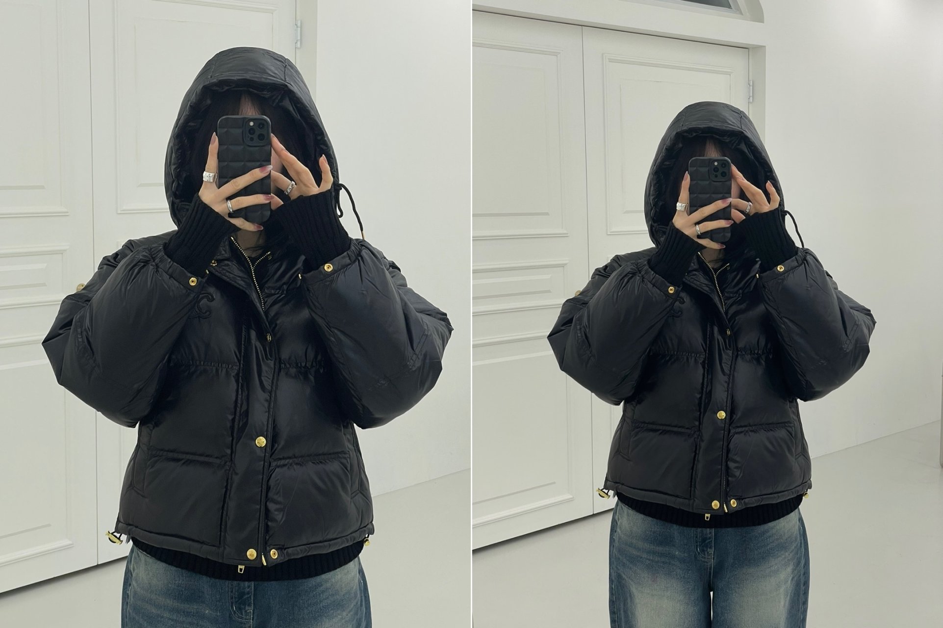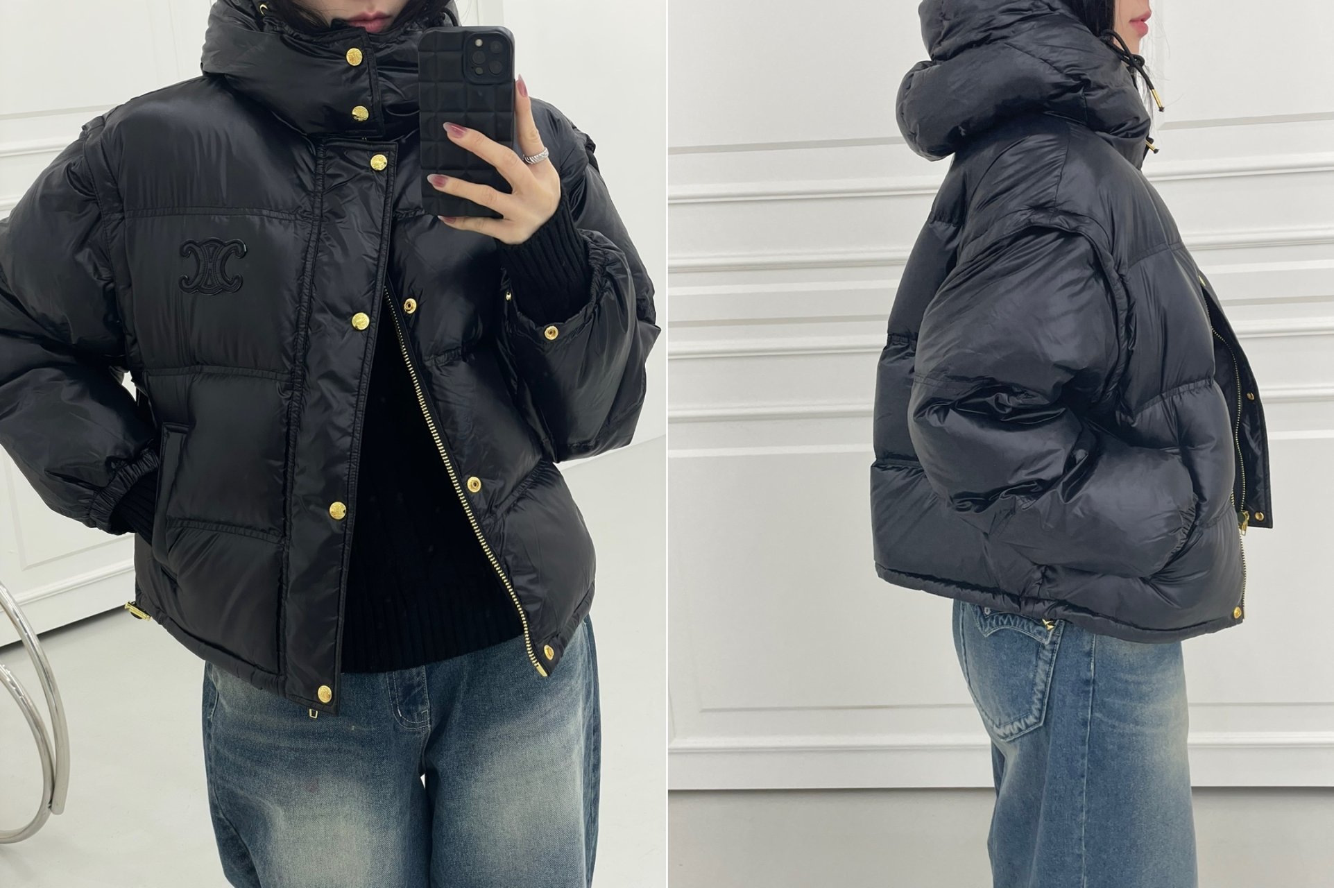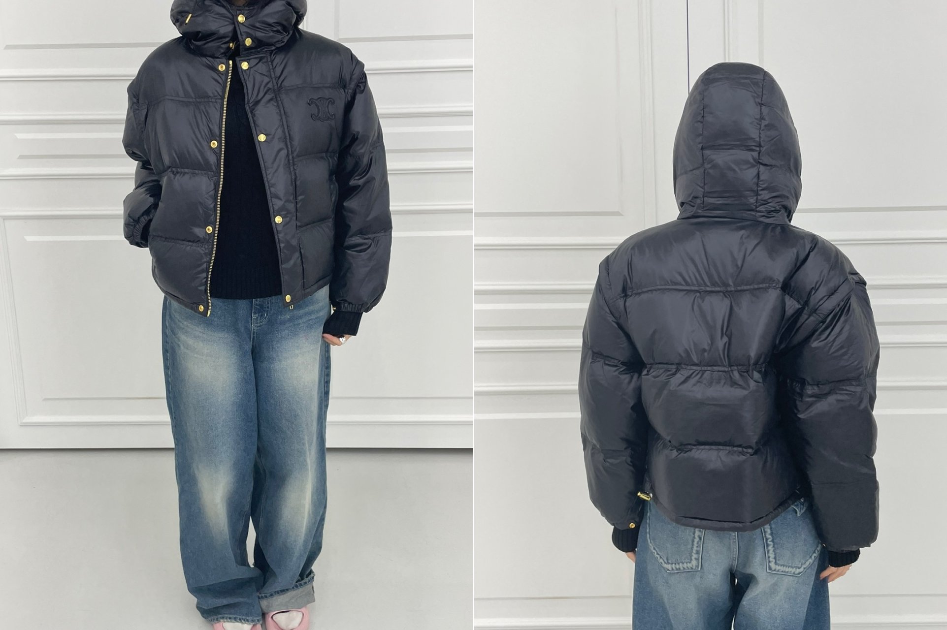 셀린느 트리오페 크롭 패딩(블랙)