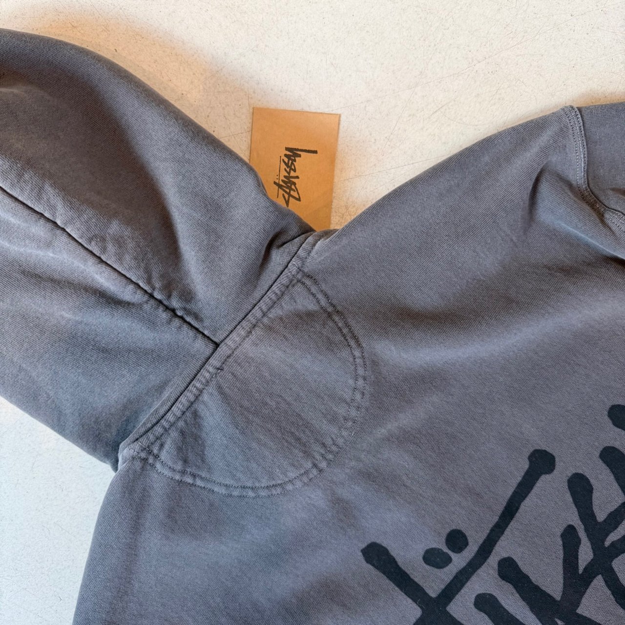•완벽한 싱크로율 재현을 하기 위해 스투시 후드집업 오리지널과 동일한 원단및 시보리를 수입하여 제작되었습니다 (타업체에서 사용하는 일반 국내산 기모쭈리, 헤비쭈리 아닙니다)