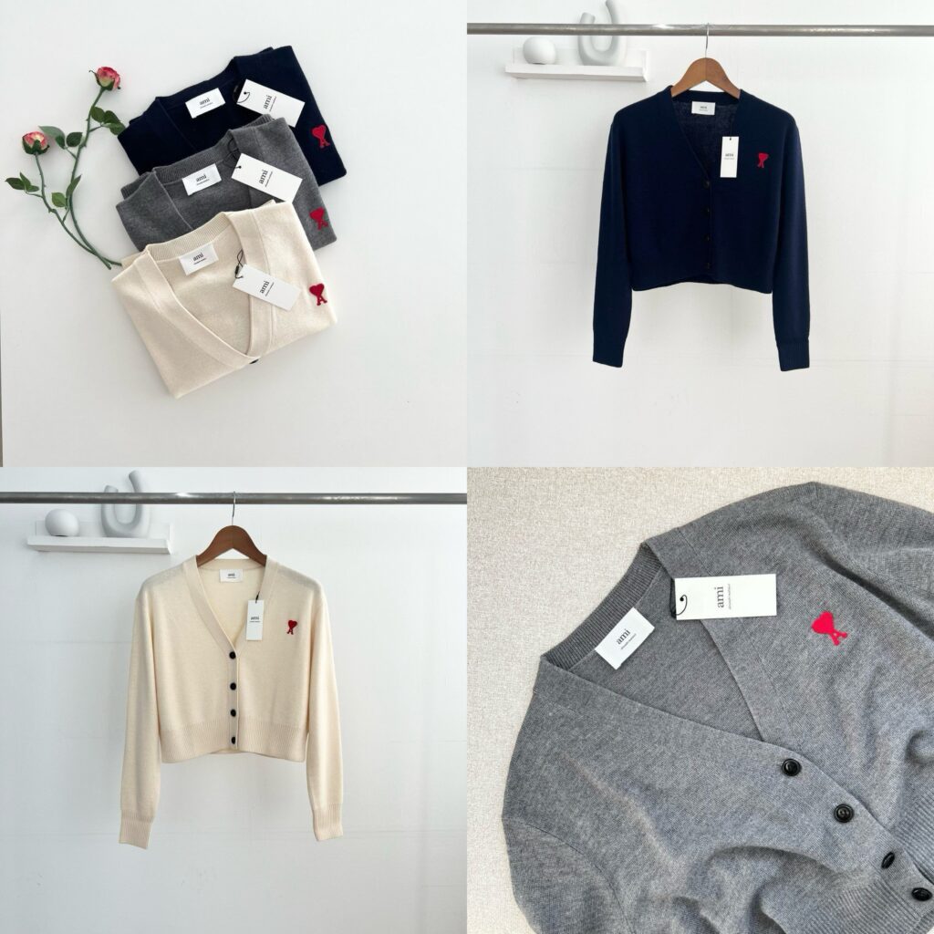 아미 우먼 하트로고 울 가디건