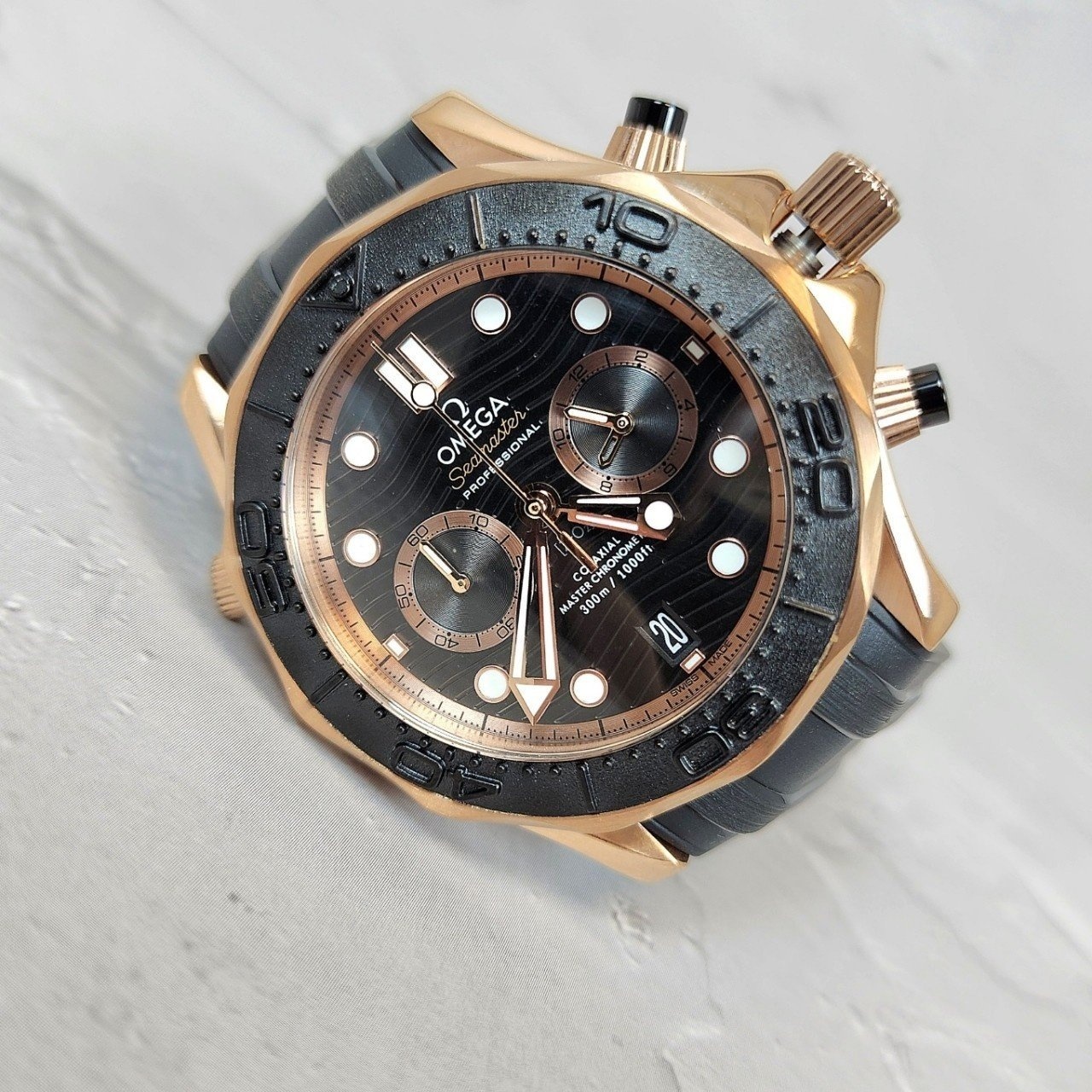 이번에 소개해드릴 시계는 오메가 코액시얼 씨마스터 다이버300M 블랙다이얼 로즈골드 입니다.