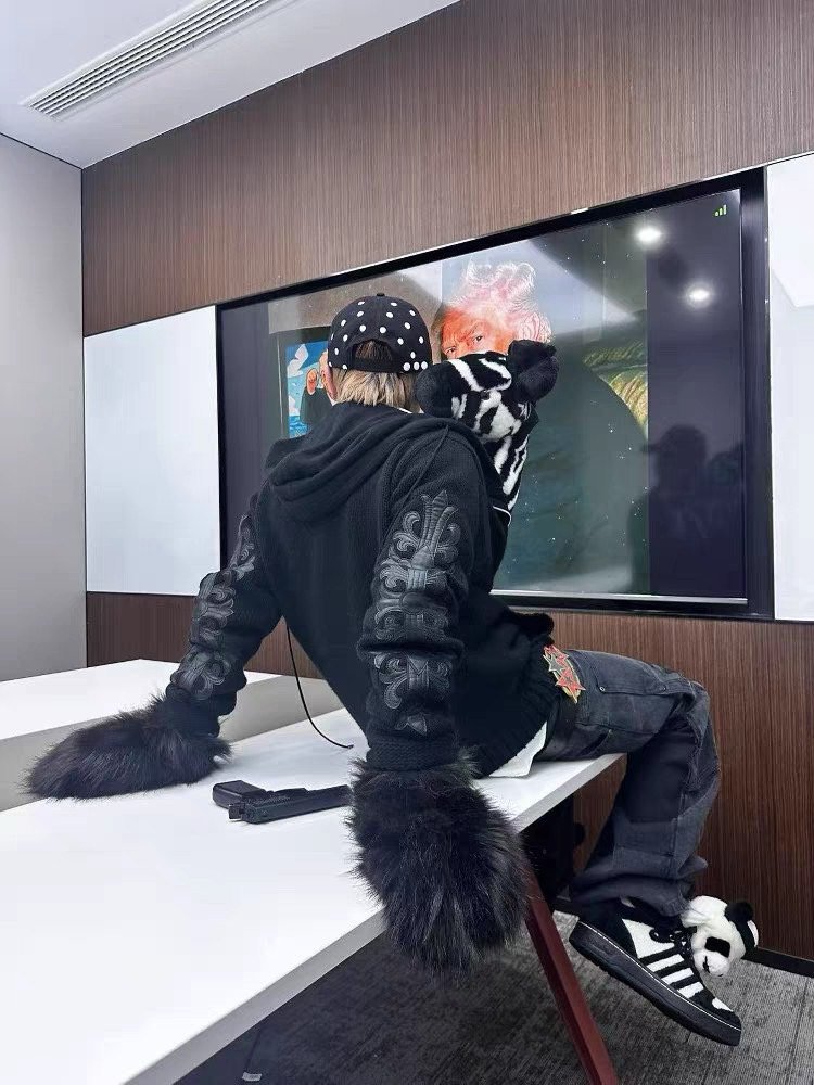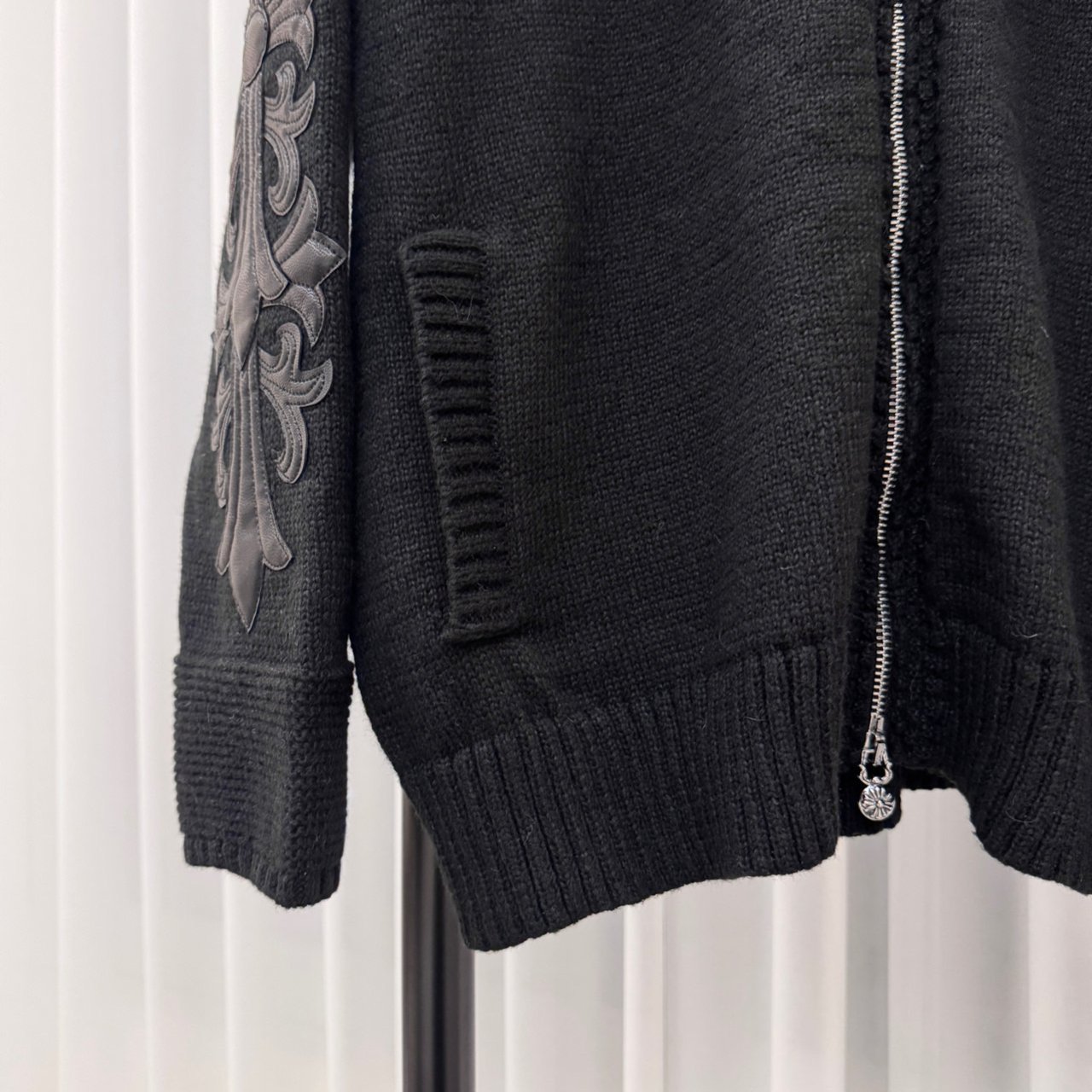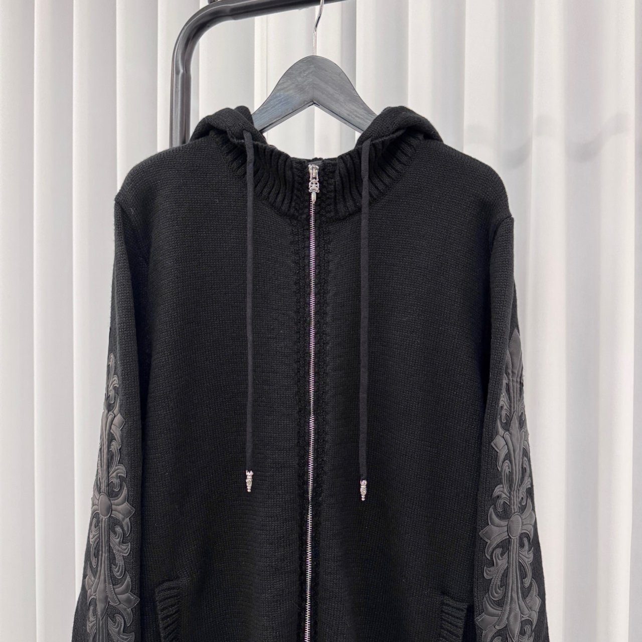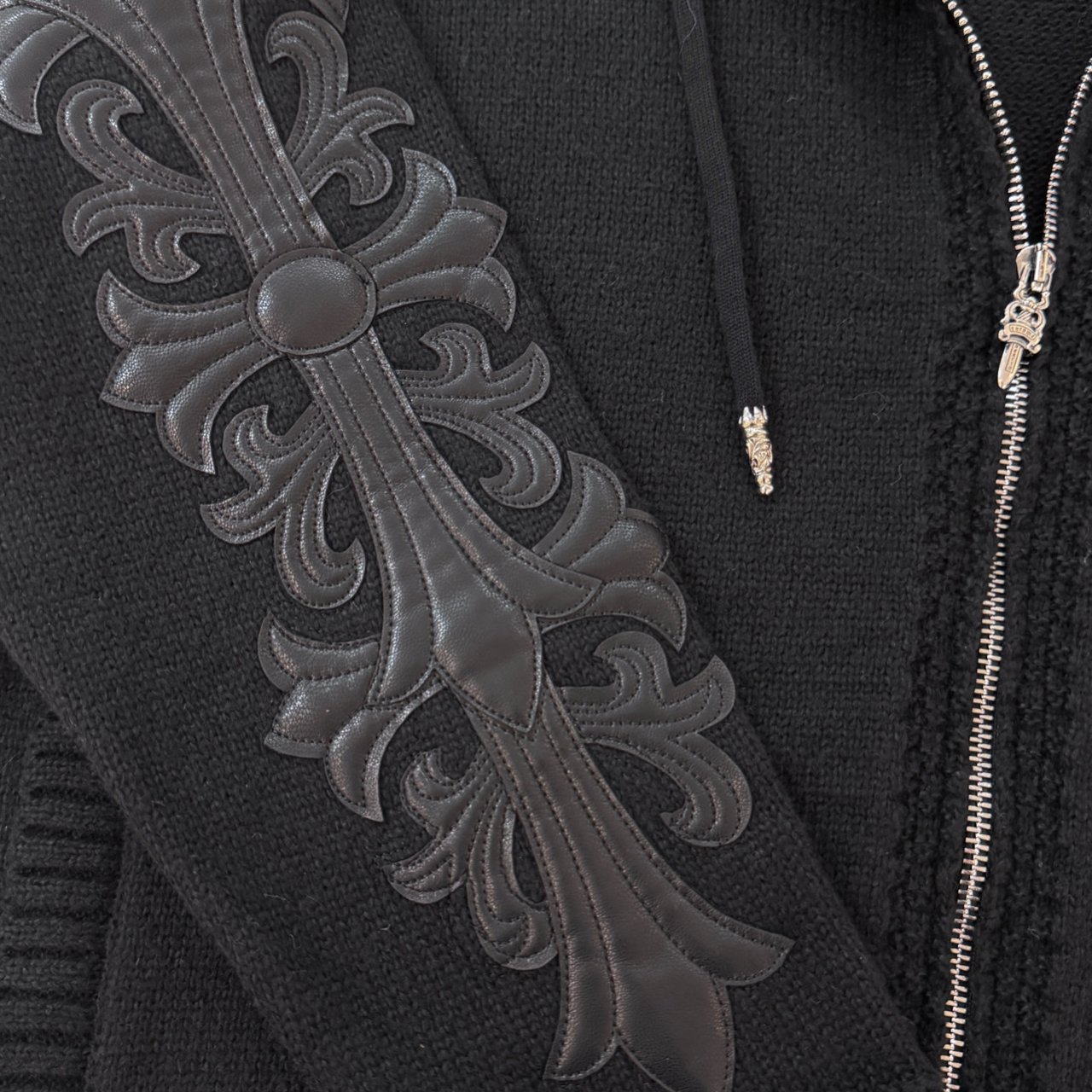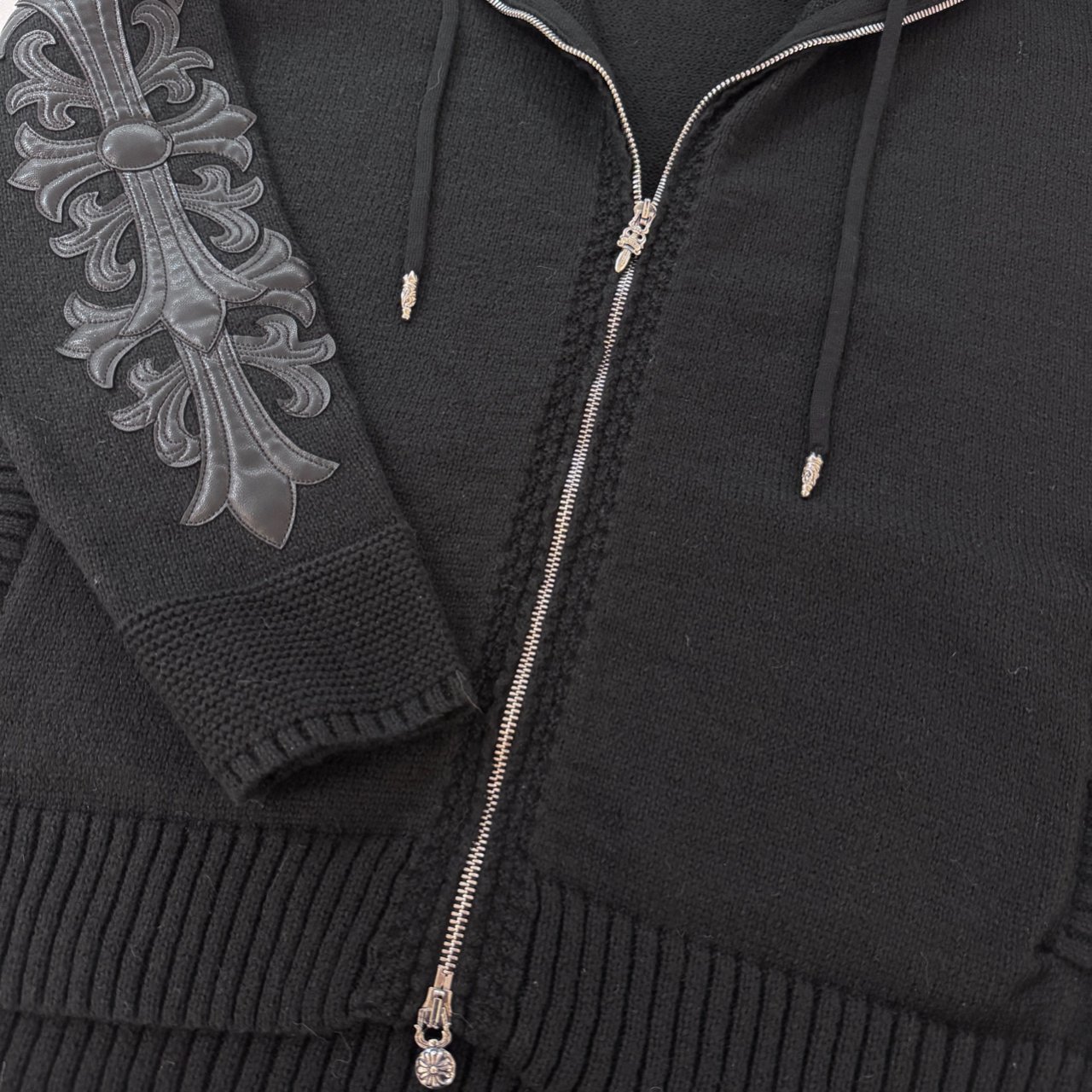 크롬하츠 레더 플로랄 패치 후드집업