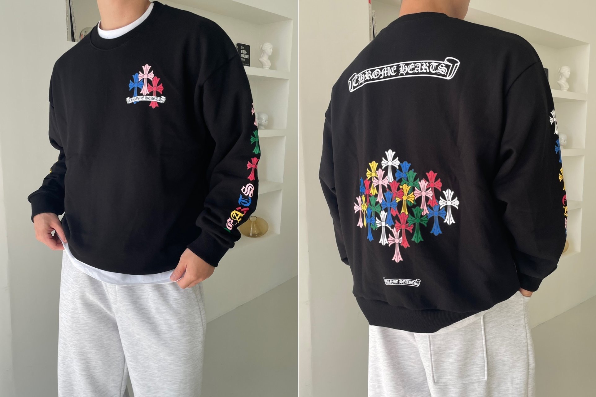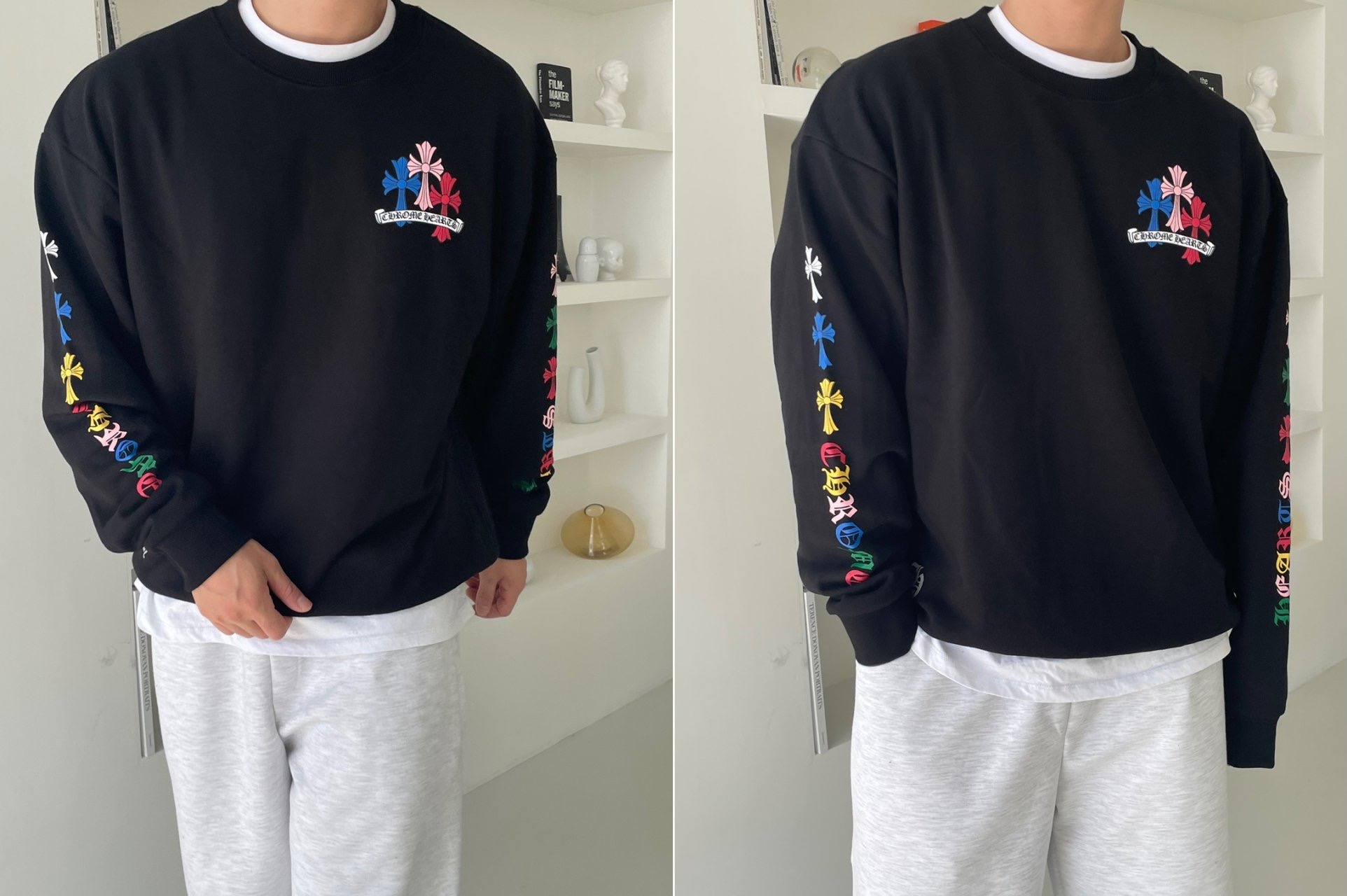 크롬하츠 멀티컬러 크로스 맨투맨(블랙)