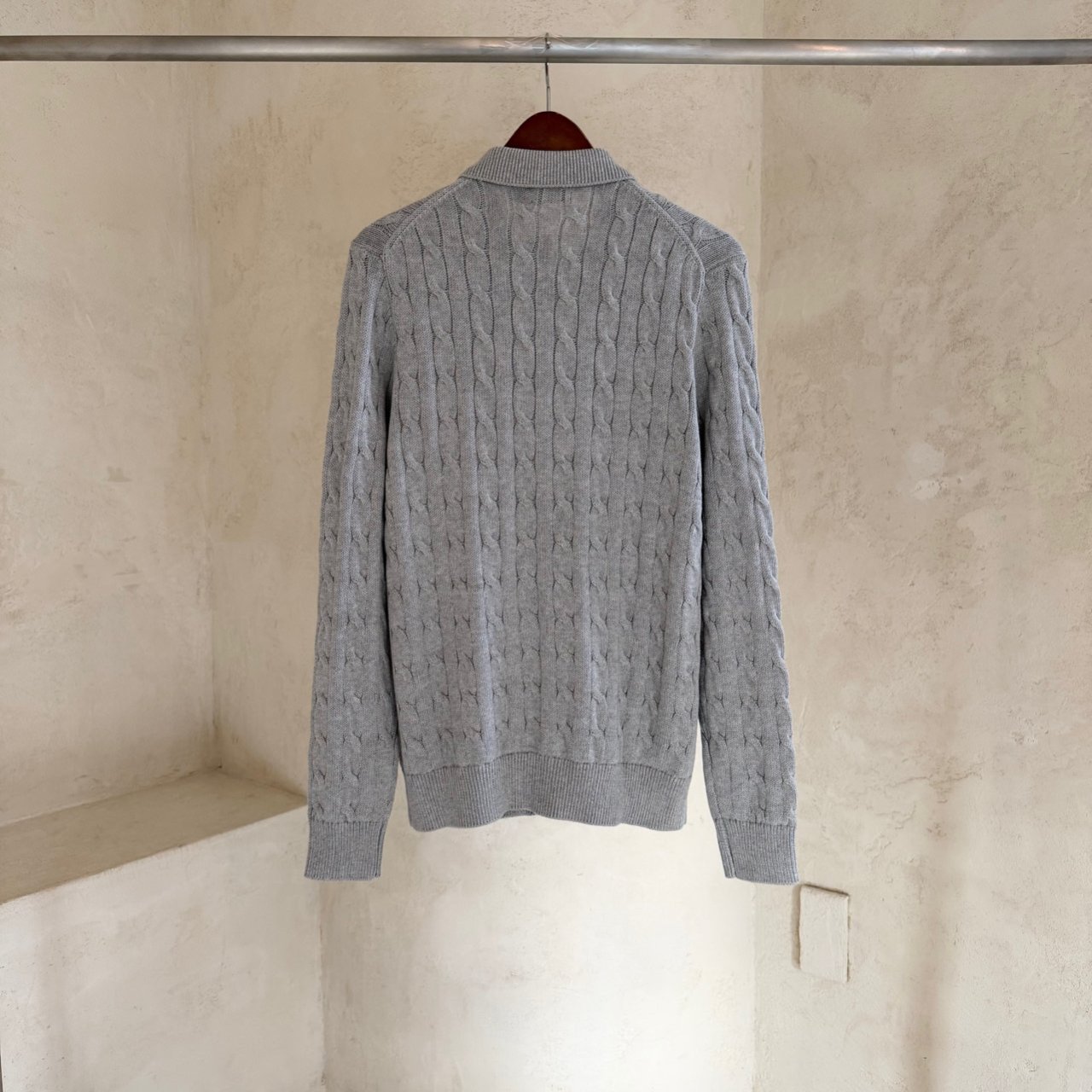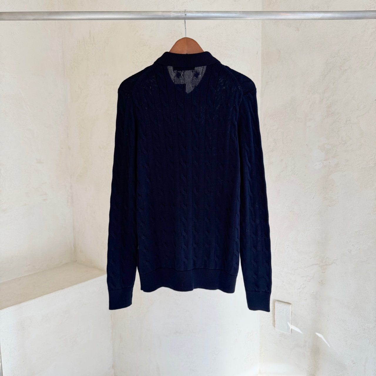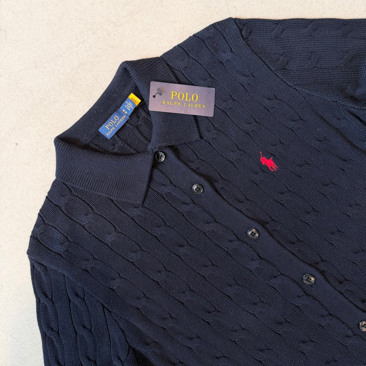 •Polo의 가장 아이코닉한 두 가지 디자인 요소인 텍스처 케이블 니트 모티프와 시그니처 포니 자수가 특징인 카디건입니다.